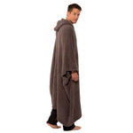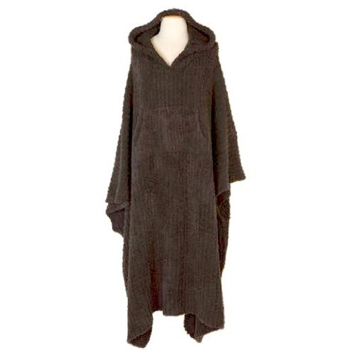 Charcol color long ribbed cozy. Relax and feel free in the long ribbed cozy. This effortless wearable throw for women and men is as desirable as our legendary throw, but gives you the freedom to use your hands while staying warm and comfy. It is made with our Barefoot Dreams signature cozychic knit and features both a slouchy hood and front pocket for extra warmth and style. It's perfect for those chilly days at the beach, cold nights at the ball game or simply wearing while relaxing at home.