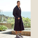 Nothing compares to the soft and luxurious feeling of our legendary robe designed for women and men. It's irresistibly cozy and the perfect way to start and end your day. Female model is wearing a size 1. Male model is wearing a size 3. The length from shoulder seam to hem: Size 1 (44"), Size 2 (47"), Size 3 (50").