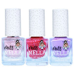 Give your little ones the freedom to explore their creativity and fashion sense with this Miss Nella Bundle. It includes 3 water-based, peel-off kids nail polishes.