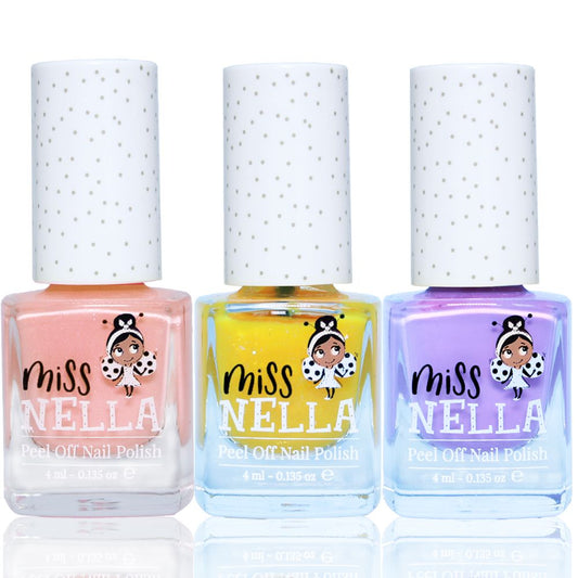 Miss NELLA brings innocent and whimsical nail painting to kids of all ages. We think playing dress up should be all about having fun in a sound environment for the whole family, which is why we focused on producing a nail polish that enables little girls to explore fashion safely. It is a Non-toxic, Water Based Formula, Odorless and Peel off Nail Polish.