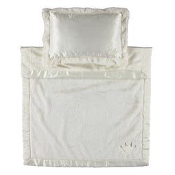 Your little one is going to love taking a rest with our cuddle nap-to-go set. Made of the world's softest plush and silky satin. Available in four lovable colors, each featuring its own special embroidery.