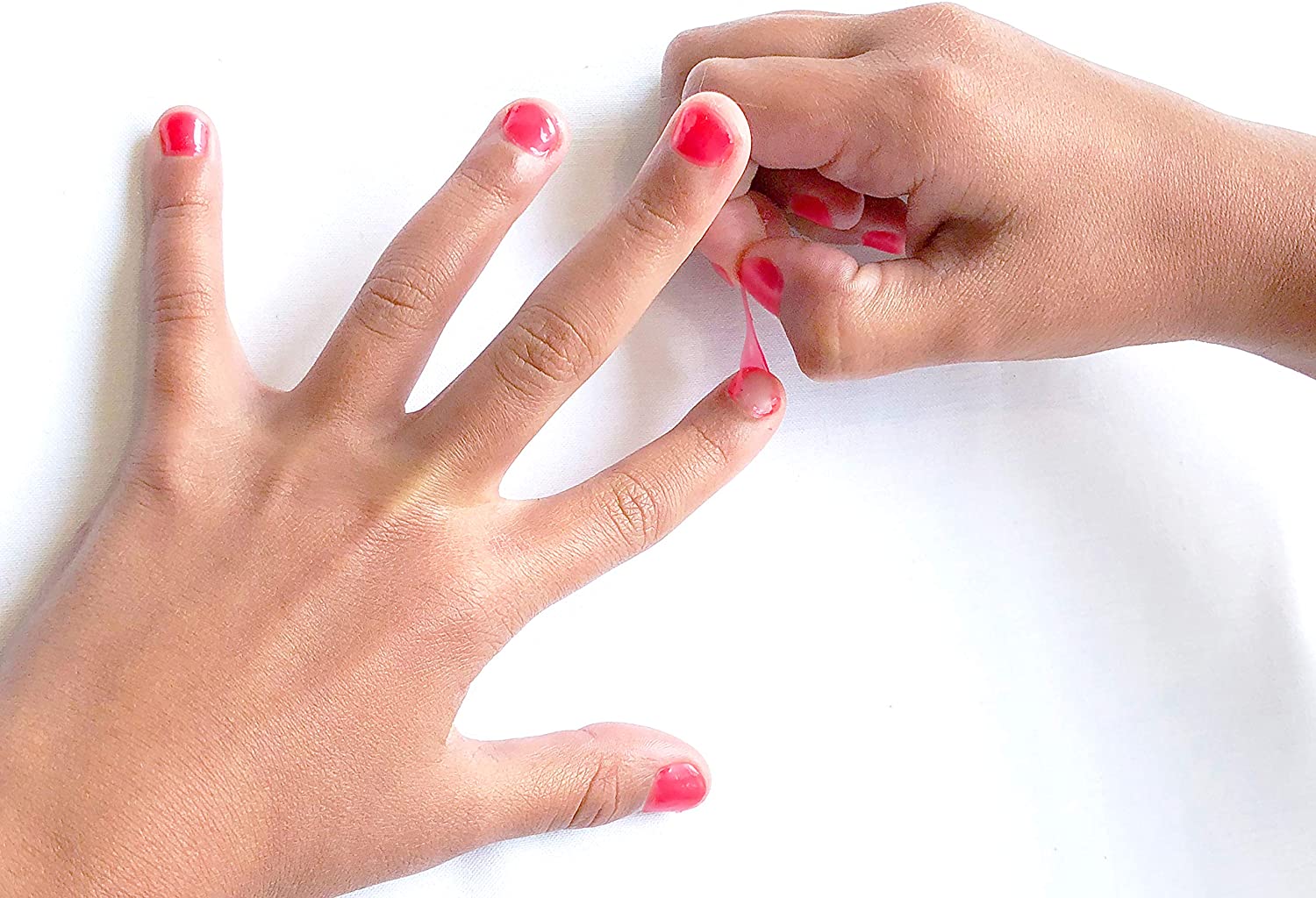 The kids’ nail polish is made from a non-toxic, odour-free, alcohol-free formula that can be peeled off easily from their teeny tiny fingers. You don’t need a toxic nail polish remover for that.