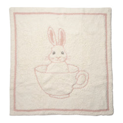 This vintage-style jacquard blanket is knit from our world-renowned feather yarn in the softest hues. Featuring an adorable bunny companion, your little one is destined to have the sweetest dreams.