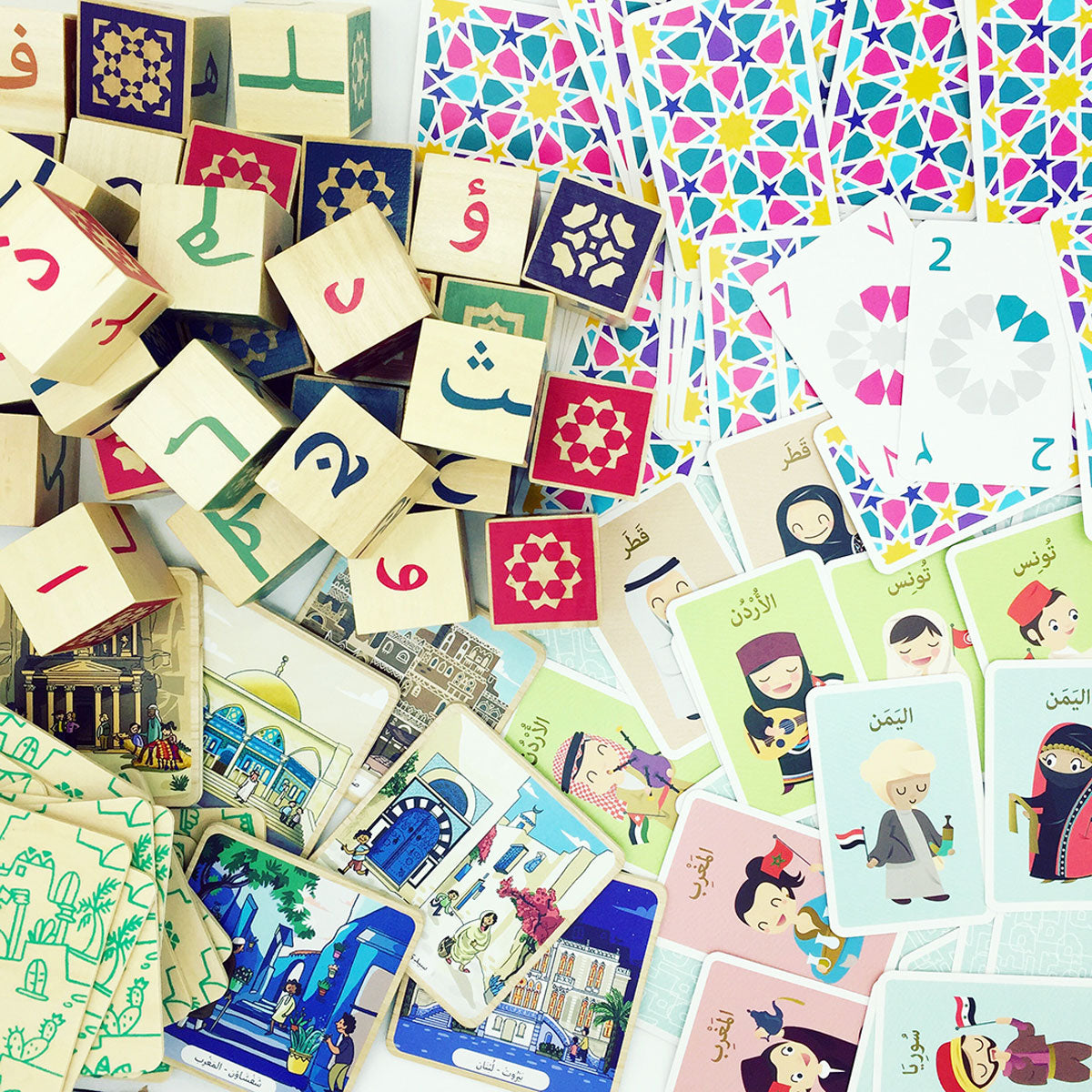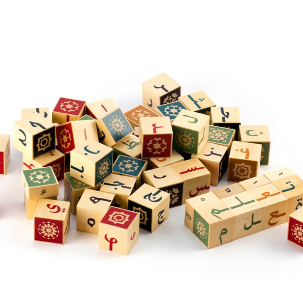 An intergenerational game in the form of wooden blocks that facilitates the learning of writing in Arabic by manipulating the letters of the alphabet in all their forms.