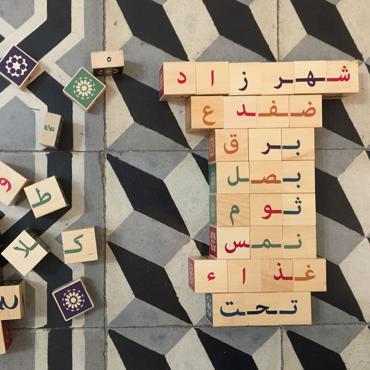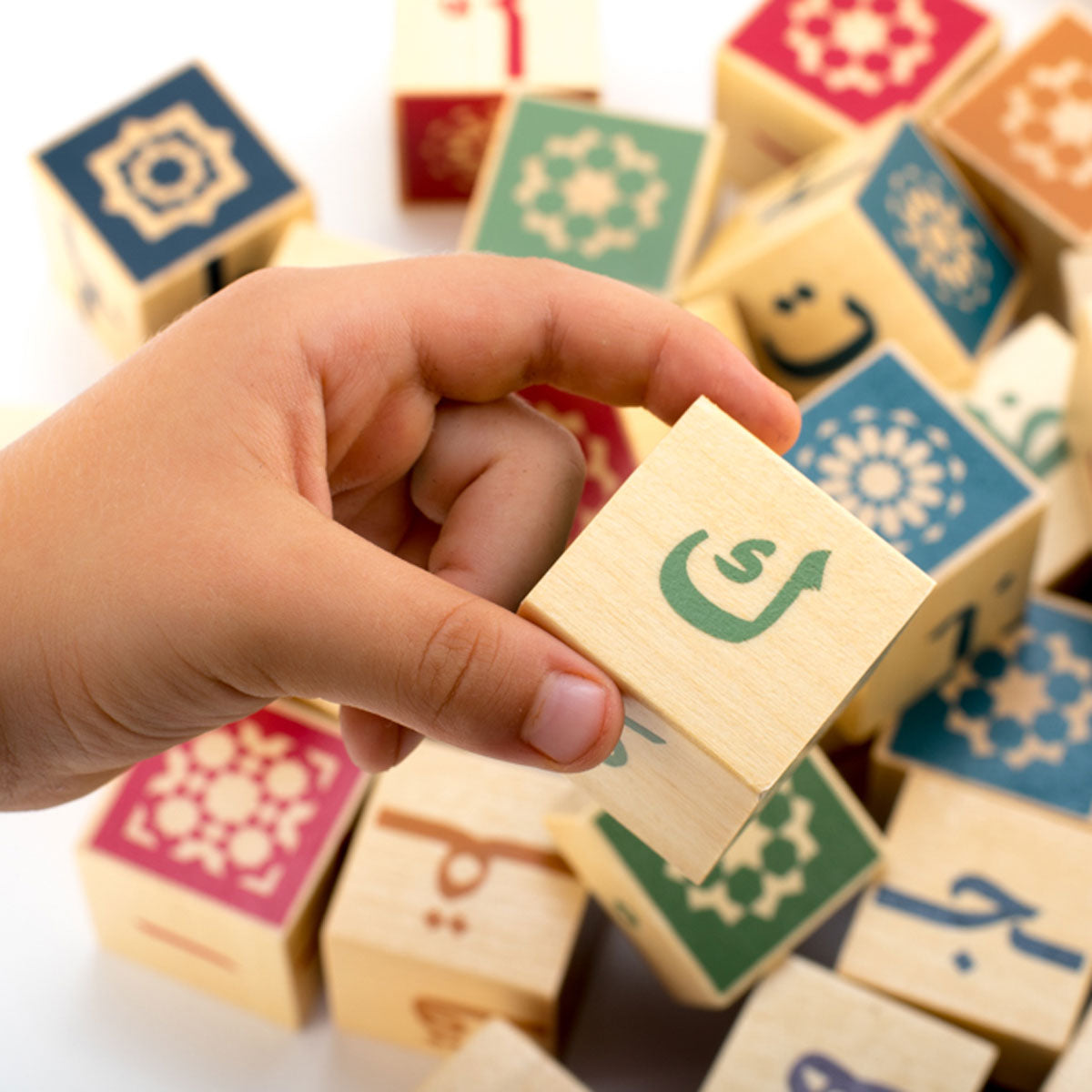 – Handle very light cubes in linden wood, adapted to the size of small hands and discover arabesque motifs.